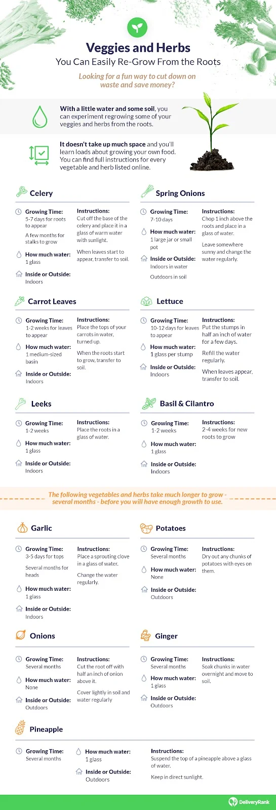 If you feel like channeling your inner gardener (or farmer), there are a few foods you can re-grow by hanging onto the leftovers.