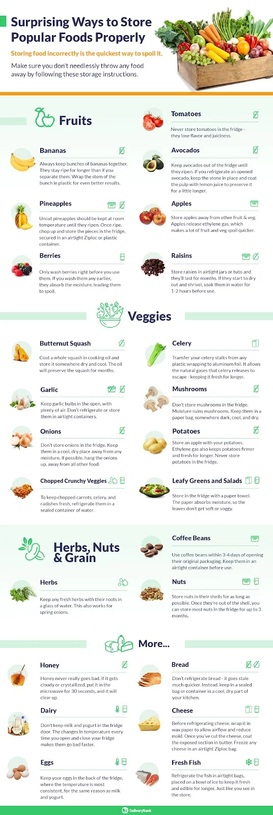 The quickest way to reduce food waste is to make sure you’re storing your food correctly so it doesn’t go bad before you eat it. The less food you throw out, the less you’ll buy replacing the waste.