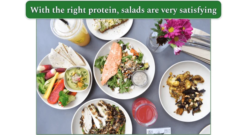 To make salads more filling, add proteins like grilled chicken, tofu, beans, or eggs. Including grains like quinoa or brown rice, and adding healthy fats from avocados or nuts, will also help you stay satisfied longer.