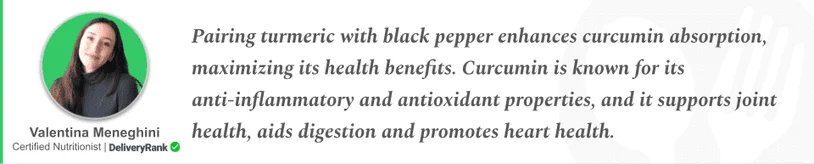 Eating turmeric alongside black pepper is one of the best ways to maximize it. Adding black pepper to your recipes with turmeric can make the curcumin up to 20x more bioavailable. Alternatively, turmeric supplements contain a higher curcuminoid concentration than turmeric powder – however this means they come with their own set of health considerations.
