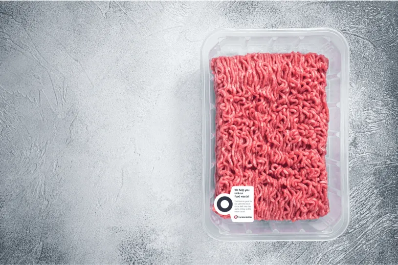 For now, we’re focusing on tray packages with a film cover. We print our reactive ink onto a label which we position on the inside of the film cover, so it’s clearly visible from the outside.