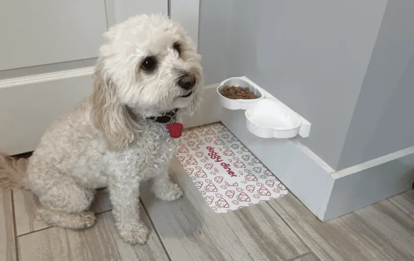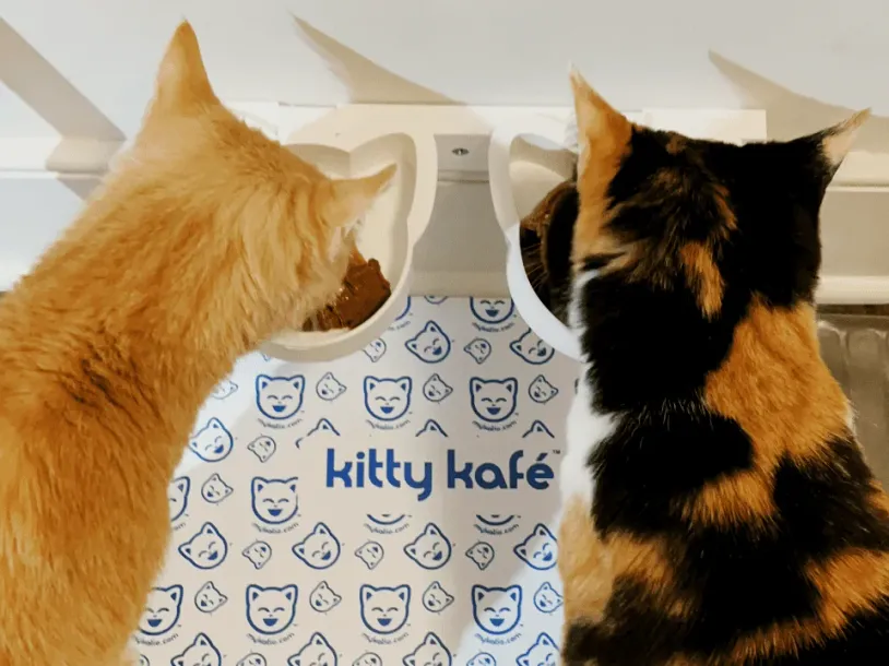 As the bowls are held in place with brackets, our pets are unable to move the bowls around, which of course leads to less mess and benefits both pets and owners alike. The fact that the bowls are elevated makes cleaning easier, and allows for the use of a robot vacuum ;). In addition, because the bowls are elevated, they can be mounted anywhere, not only off the floor. Perhaps if you are catifying your house and trying to find a solution to feed your cats while keeping the dogs at bay, Kitty Kafe™ can be mounted off a countertop for example, or any raised surface. This in turn increases accessibility for pet owners who may have a disability….