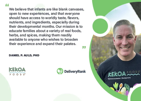 Dr. Daniel P. Auld is the co-founder and president of Kekoa Foods, a company dedicated to providing nutrient-rich, organic meals for infants. Inspired by his son Kekoa’s premature birth and the importance of early nutrition, Dr. Auld combined scientific research with culinary innovation to create flavorful, health-focused baby food. His mission is to educate families on the benefits of diverse, wholesome ingredients, fostering a lifelong appreciation for nutritious eating. DeliveryRank offers you an exclusive interview.