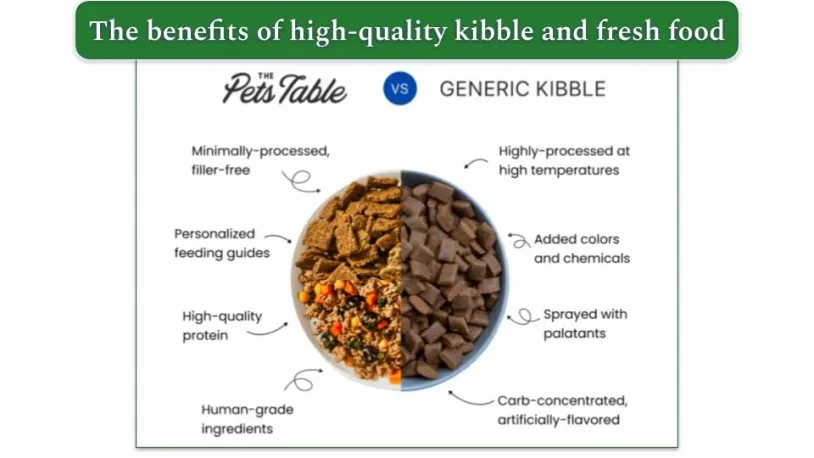 - Consider your budget: If you're interested in fresh food but concerned about cost, consider using it as a topper for kibble. For instance, The Pets Table offers a half fresh meal plan that allows you to blend the benefits of both fresh and dry food, making it more budget-friendly while still enhancing your dog's diet.