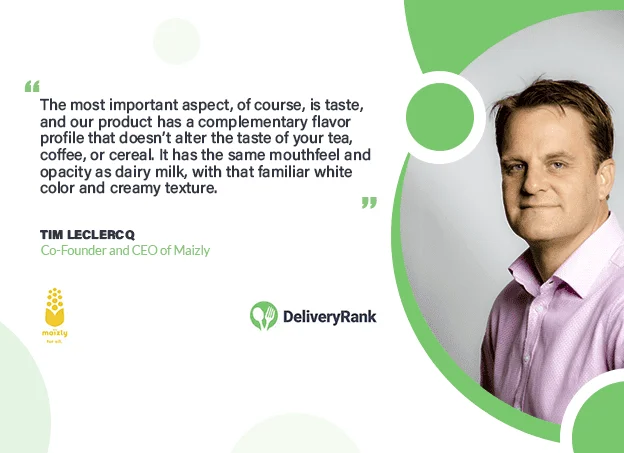 Maïzly’s journey didn’t stop at plant-based milk—it has expanded into flavored milks, a custard range, and even an infant formula developed with global health challenges in mind. In this Delivery Rank’s interview, we’ll delve into how Tim’s experiences, combined with a commitment to sustainability and innovation, have shaped Maïzly’s unique approach to plant-based products, and how they’re making a tangible difference in the world’s food landscape.