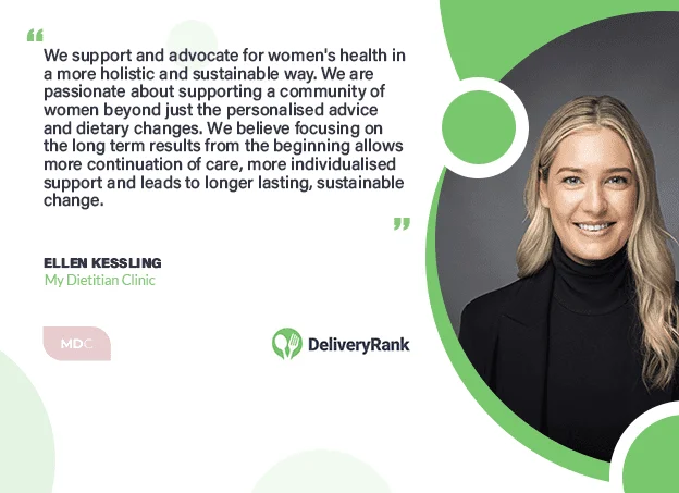 DeliveryRank has the pleasure of chatting with Ellen Kessling, an Accredited Practising Dietitian & Nutritionist specializing in Women’s Health, Gut Health, and Irritable Bowel Syndrome. With a Health Science Degree from the University of Adelaide and a Master's in Nutrition & Dietetics from Flinders University, Ellen founded My Dietitian Clinic on the Gold Coast in 2021. Her passion lies in a holistic, empathetic approach to women's health, focusing on sustainable, long-term changes rather than quick fixes. Ellen's dedication extends beyond 1:1 consultations, emphasizing ongoing care through packages and programs, aiming for more effective and lasting results.