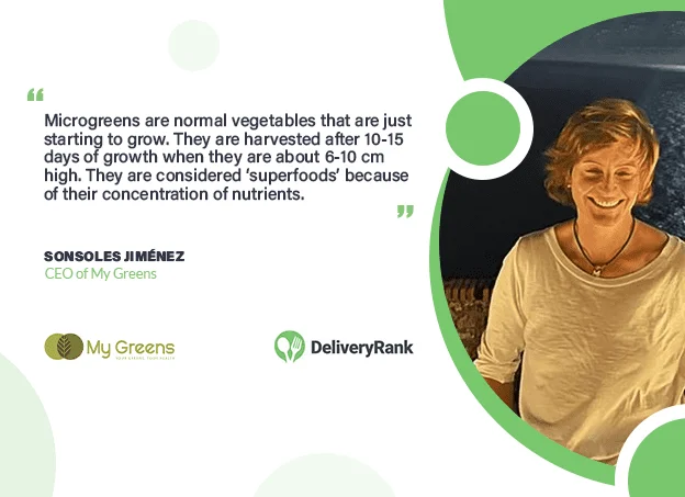 DeliveryRank chats with Sonsoles Jiménez, the CEO of My Greens and a visionary leader committed to bringing fresh micro vegetables directly to your table. With a focus on flavor and nutritional value, Sonsoles and her team work tirelessly to harvest these tiny greens daily, ensuring that you receive a vibrant array of nutrients, minerals, and vitamins in every bite. Get ready to elevate your dining experience with these delightful and health-packed micro vegetables.