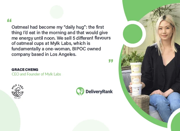 Mylk Labs is fundamentally a one-woman, BIPOC-owned company based in Los Angeles. We sell five different flavors of oatmeal cups, including Toasted Coconut & Cinnamon, Apple, Blueberry, Hazelnut, and Almond.