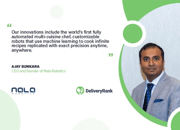 Ajay Sunkara, CEO and founder of Nala Robotics, shares his insights with DeliveryRank on robotic cuisine, his vision of the future of the industry and describes their two incredible products; the Pizzaiola and Nala Chef.