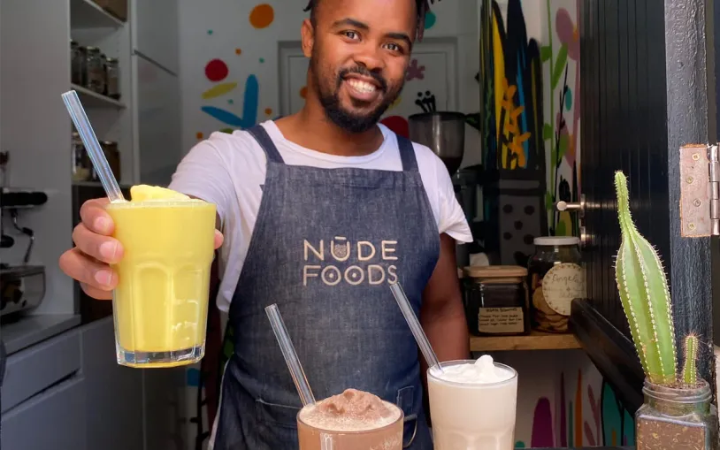 We realised that many of our customers were wanting a café experience alongside our grocery offering. We launched Café NUDE in 2021, which is our instore café offering organic teas, coffees, smoothies, lattes as well as a range of vegan, gluten free muffins, chocolate confectionaries, and snacks. Unlike any other café, we do this all plastic free, this means we use returnable glass jars for our smoothies and hot drinks.