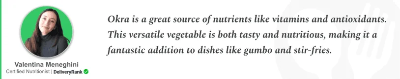 Okra is good for you. It's low in calories and rich in vitamins A and C, fiber, and magnesium. These nutrients support vision, skin health, digestion, and heart health, making okra a nutritious addition to your diet.