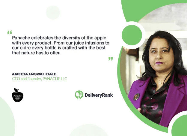 DeliveryRank meets Ameeta Jaiswal-Dale, Co-Founder & CEO of Panache. Her journey began when she ventured into the Minneapolis Grain Exchange, pondering apple juice futures. With a background shaped by her upbringing in Southern Asia and Europe, she realized the absence of healthy, low-sugar beverages in her American household. Ameeta's passion for fruits, nurtured from her childhood experiences, led her to establish Panache, celebrating the diversity of the apple and infusing it with her life's wisdom.