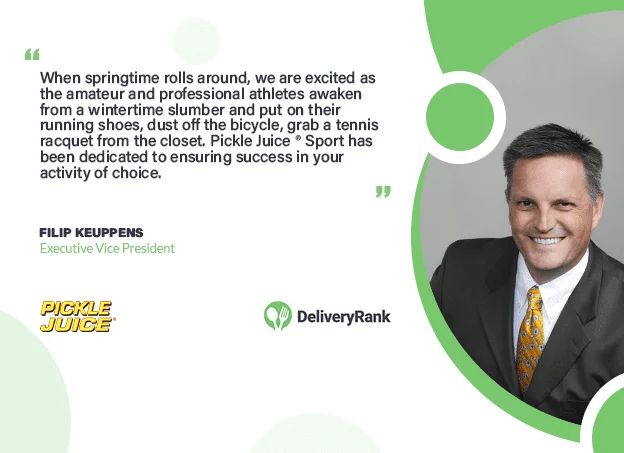 Filip Keuppens, Executive Vice President of The Pickle Juice Company, was kind enough to spare some of his time for DeliveryRank and explains the benefits of this miraculous elixir on all kinds of cramps, sport related and other.