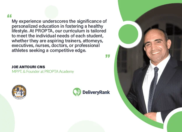 Introducing Joe Antouri CNS, MPPT, Founder at PROPTA Academy - where passion meets professionalism in the realm of fitness and nutrition education. Step into the world of PROPTA, the Professional Institute for Fitness and Nutrition Worldwide, also recognized as the Professional Personal Trainers Association (PROPTA™ / USPTA™ / PTA™). Since its inception in 1980 by the illustrious bodybuilder and esteemed Mr. USA title holder, Joe Antouri, PROPTA has stood as a beacon of excellence in the fitness industry. Dedicated to fostering excellence on a global scale, PROPTA offers an extensive array of certification programs tailored to meet the evolving needs of the fitness industry. From Personal Trainers and Nutritionists to Weightlifting Coaches and Sports Performance Nutrition experts, PROPTA equips its students with the knowledge and skills needed to thrive in their respective fields. With affiliates spanning across 183 nations in the Americas, Europe, and Asia, PROPTA is more than an academy—it's a global movement towards healthier, more empowered communities. Delivery Rank Introduces PROPTA, a place where we empower the next generation of fitness and nutrition leaders to make a lasting impact on the world stage.