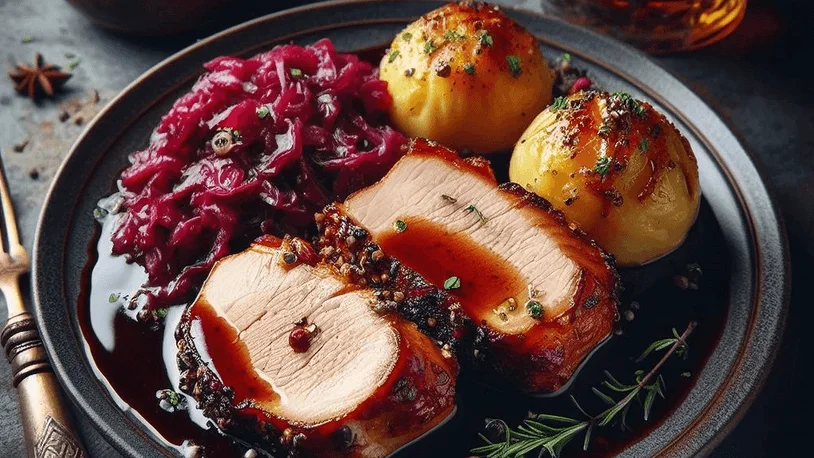 Authentic Rotkohl (Slow-Braised Red Cabbage) is a classic German side dish that perfectly balances sweet and tangy flavors, making it an excellent accompaniment to hearty meals like roast pork or sausages. The red cabbage is slowly braised with apples, apple cider vinegar, and a blend of warm spices, which creates a tender, flavorful dish with deep, rich notes. The slow-cooking process allows the cabbage to absorb the aromatic spices and apple sweetness, making each bite a comforting experience.