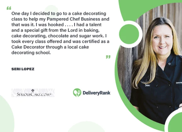DeliveryRank has the pleasure of chatting with the very talented Seri Lopez, founder of Serious Cake, who discovered her passion for baking early in life, starting with a Suzy Bake Oven and evolving into a self-taught expert in cake artistry. After a successful career as an Executive Assistant, she followed her calling and turned her creative gift into a full-time business. Now a certified cake decorator trained by world-renowned artists, Seri brings her love of baking, chocolate, and sugar work to each custom creation, making every celebration a little sweeter.