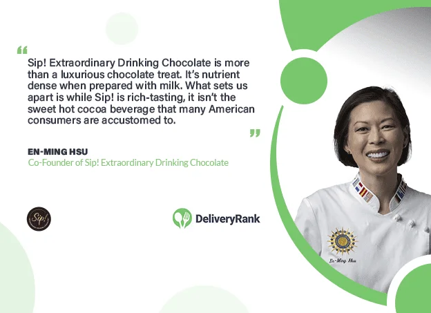 Embarking on a remarkable journey from a distinguished 30-year pastry career to the co-founding of Sip! Extraordinary Drinking Chocolate, En-Ming Hsu's story is one of resilience, innovation, and compassion. From her beginnings in Washington D.C., to becoming the Executive Pastry Chef at the Ritz-Carlton Chicago, Hsu's expertise has graced prestigious establishments worldwide. However, the challenges posed by the COVID-19 pandemic prompted a pivot that led to the creation of Sip! In collaboration with her sister, Yih-Ming, the duo drew inspiration from their shared memories of sumptuous drinking chocolate in Spain. In this interview with DeliveryRank, En-Ming Hsu shares the evolution of Sip!, the distinct qualities that set their drinking chocolate apart, and their unwavering commitment to sustainability, community impact, and unparalleled indulgence.