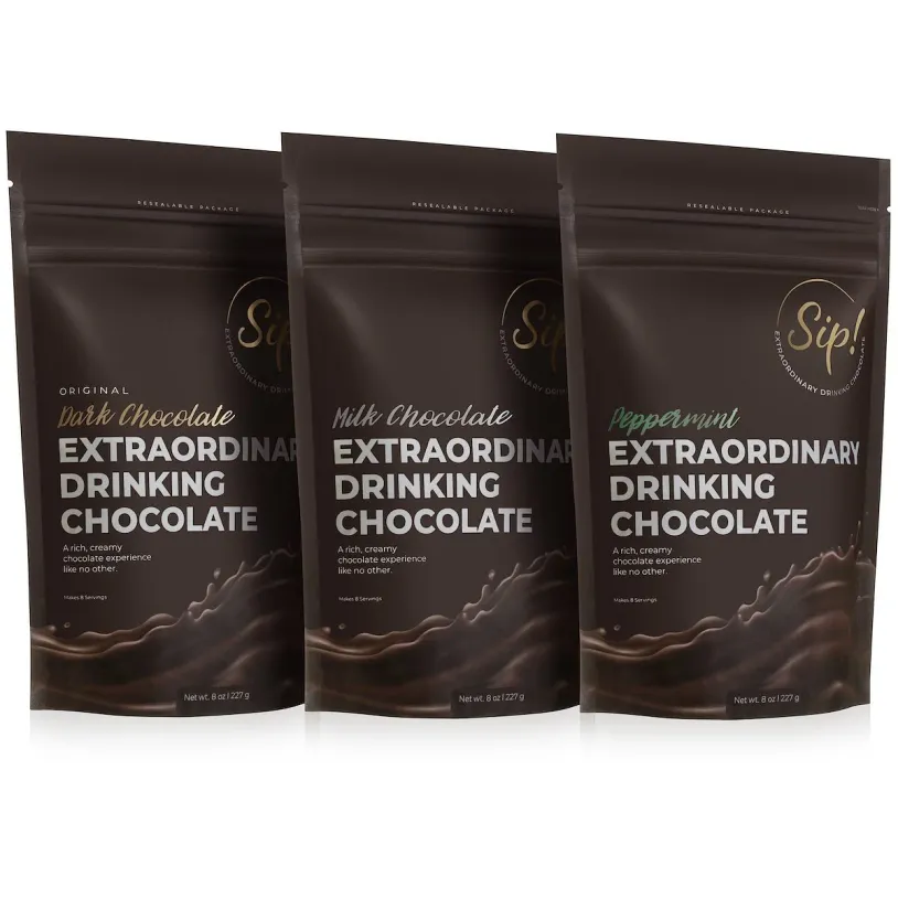 Sip! Extraordinary Drinking Chocolate is a rich, creamy chocolate indulgence. Our easy-to-prepare mix is a multi-purpose product that can be served hot, cold, or frozen. It can also be used to create delicious chocolate treats such as ice cream, puddings, mousse, cookies, brownies, and sauces.