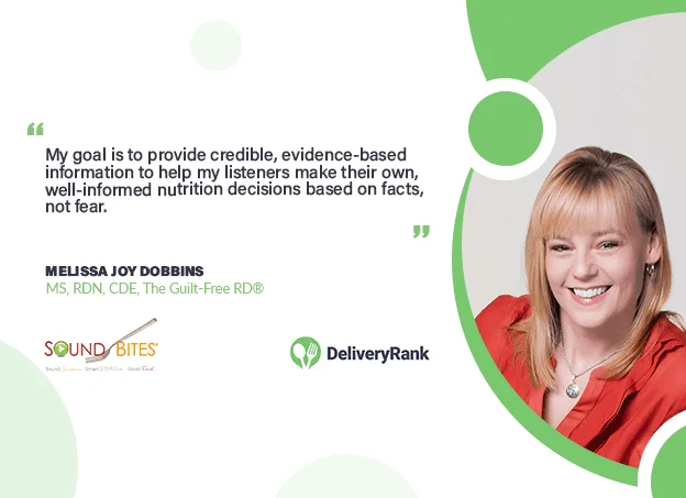 Melissa Joy Dobbins is an award-winning registered dietitian and the CEO of Sound Bites Inc. where she helps people separate fact from fiction, empowering them to take meaningful steps toward better nutrition and health.