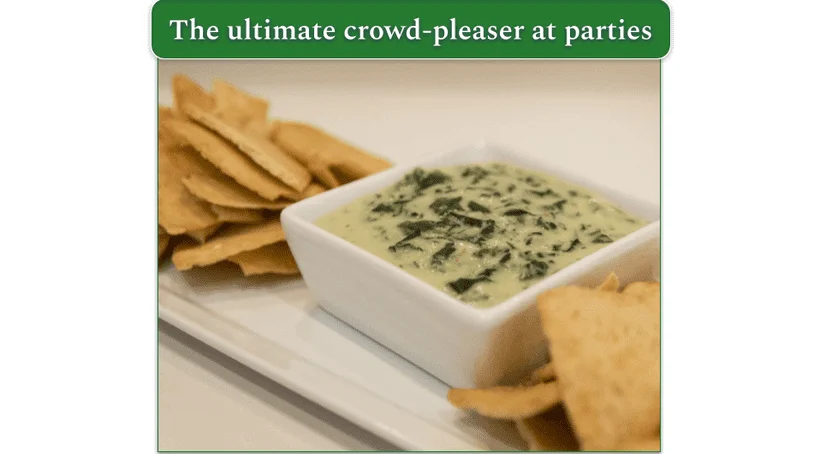If you're looking for the ultimate crowd-pleaser, this will be the MVP at any snack table! This rich, creamy, and cheesy dip is loaded with tender spinach and tangy artichokes, creating the perfect balance of indulgent and veggie-packed goodness.