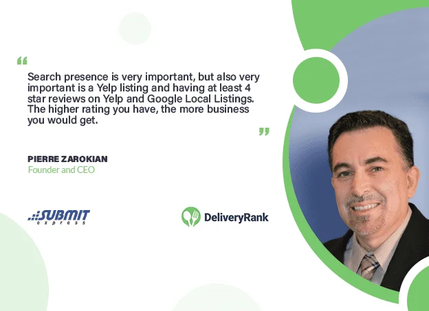 Founder and CEO of Submit Express, Pierre Zarokian has over 20 years of experience in internet marketing and writes for several internet marketing publications. In this interview, Pierre shares his informed perspectives with DeliveryRank on the importance of reputation management and key considerations for Foodservice industries when it comes to setting up their online presence.