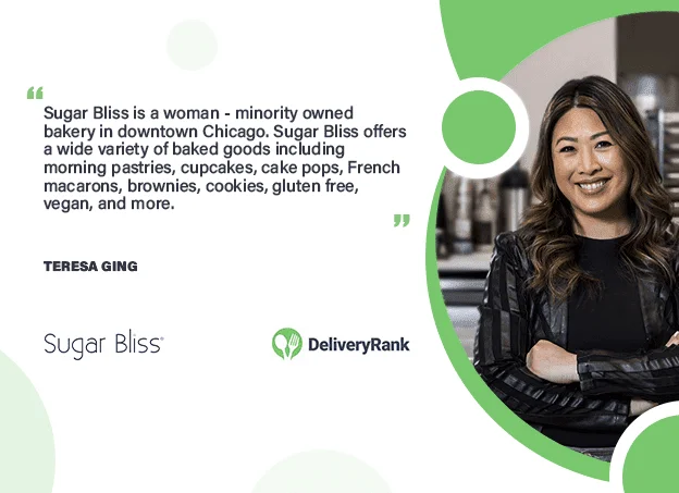 Teresa Ging is the CEO and Founder of Sugar Bliss, a bakery and packaged, baked goods company headquartered in Downtown Chicago. With a degree in Economics and Statistics from the University of Chicago, she transitioned from a successful finance career to pursue her passion for baking, studying at Le Cordon Bleu in Paris. Since launching Sugar Bliss in 2007, Teresa has expanded the business and earned numerous awards, including the NAWBO Corporate Women Achievement Award and Enterprising Women of the Year. She is also an active board member of the Asian American Chamber of Commerce of Illinois. DeliveryRank has the opportunity to chat with Miss Sugar Bliss!