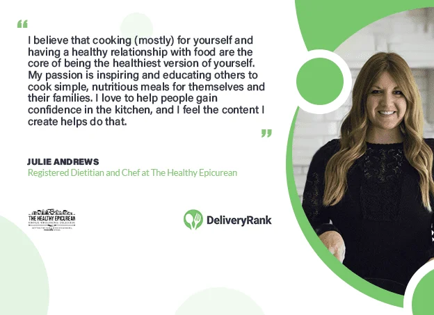 Step into the vibrant world of culinary creativity with Julie Andrews, the passionate registered dietitian and chef behind The Healthy Epicurean. From the comfort of her Midwest kitchen, Julie is a one-woman powerhouse, taking charge of every aspect of her culinary ventures. With her unwavering commitment to health-conscious eating and her insatiable love for all things delicious, Julie brings to life a symphony of flavors that captivate the senses and nourish the body. As a registered dietitian, Julie seamlessly weaves her deep understanding of nutrition into her recipe creations, ensuring that every dish not only tantalizes taste buds but also fuels the body with wholesome goodness.So, whether you seek a wholesome meal that nourishes both body and soul or an indulgent treat that satisfies every craving, Julie Andrews, the visionary behind The Healthy Epicurean, invites you to step into her Midwest kitchen and savor the magic she creates with each dish. Prepare to embark, with Delivery Rank, on a culinary adventure like no other, where health and flavor merge in a harmonious symphony that will leave you craving more.