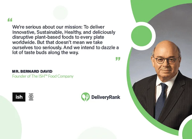 Mr. Bernard David is the visionary founder of The ISH™ Food Company, a plant-based food business that is revolutionizing the food industry with its regenerative approach. Mr. David believes that by taking a Whole System Approach to food production, we can create a sustainable food system that benefits everyone involved, from the farmers and producers to the consumers and the planet. At ISH™ Food Company, the mission is to replace more natural and social capital than they take, with the ultimate goal of creating a system that restores balance to the earth. With a commitment to regenerative practices and the use of plant-based ingredients, Mr. David and his team are on a mission to change the world one plant-based bite at a time. DeliveryRank finds out more.