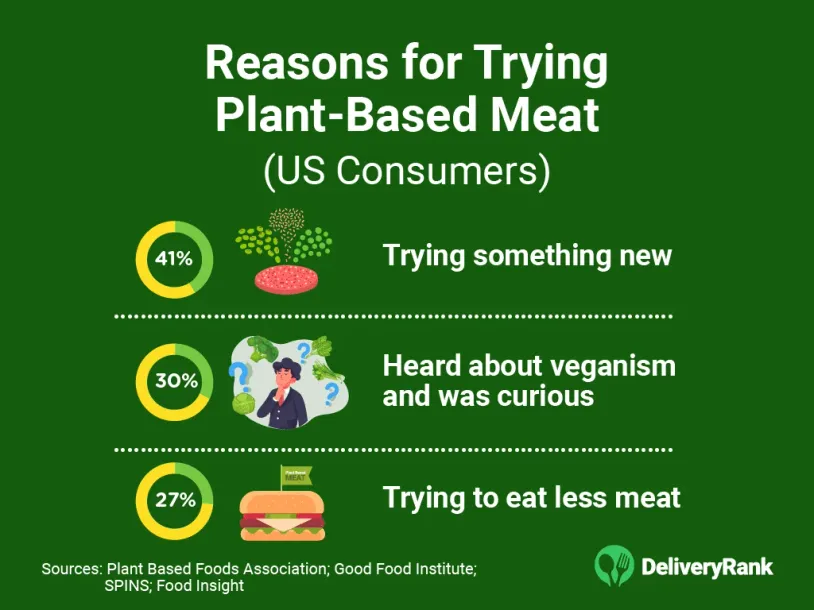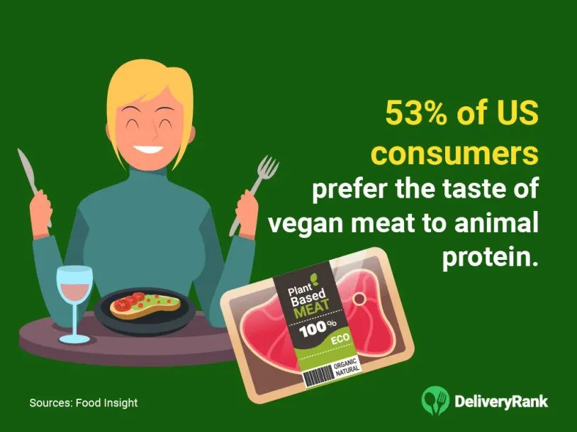 Interestingly, even those who don't adhere to a strictly vegan diet are still interested in meatless options. Around 95% of individuals in the US who order vegan burgers don't identify as vegans. This suggests that plant-based alternatives are gaining favor among lots of consumers, not just those who follow a vegan diet.