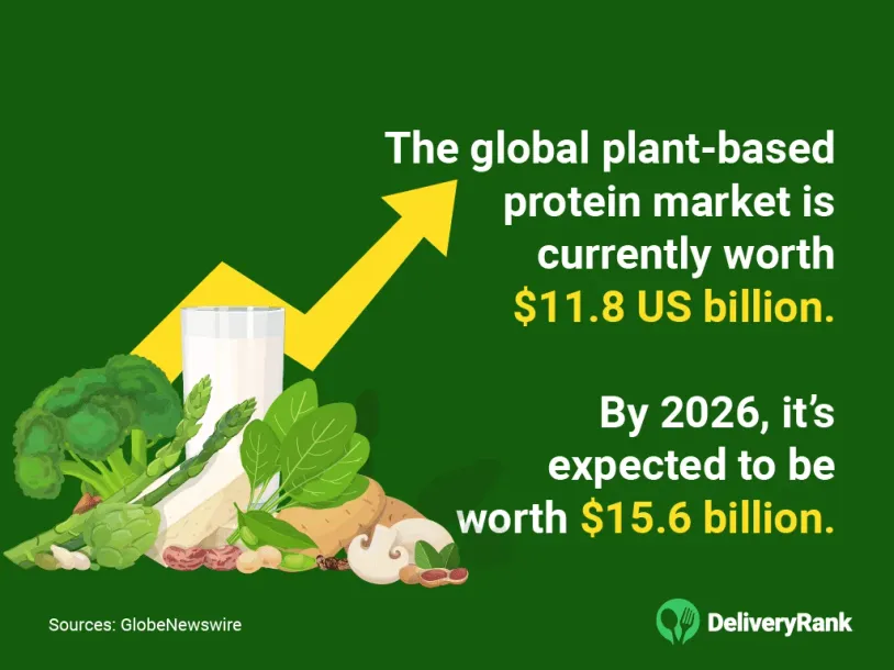 The global plant-based market has grown considerably, with a current market value of $11.8 billion. This is set to increase even further. By 2026, it’s estimated the plant protein market will be worth around $15.6 billion.