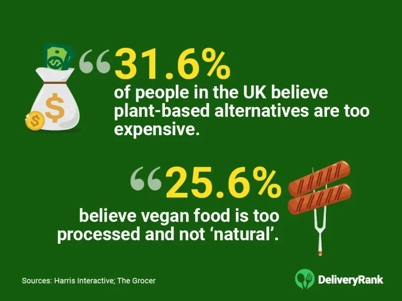 A UK survey showed that most shoppers (31.6%) believe that plant-based alternatives are too expensive, preferring to stick to cheaper, animal-based protein instead. A further 25.6% also said they think vegan food is too processed and not as natural as typical meat products, while 23% believe they’re not as good a protein source.