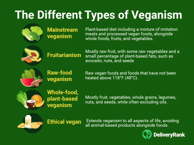 - Whole-food, plant-based veganism — This diet focuses on fruits, vegetables, whole grains, legumes, nuts, and seeds, while often saying no to oils.
