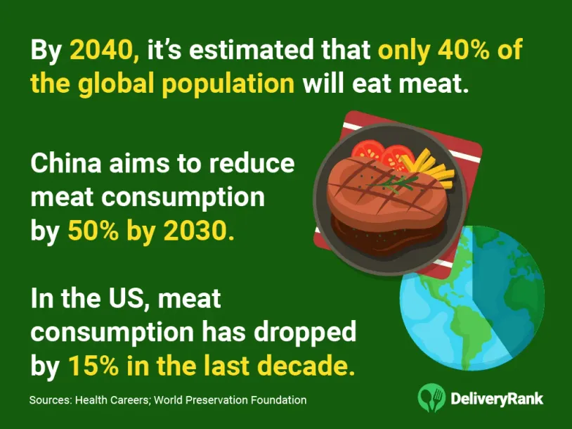 If these trends continue, global meat consumption will drop substantially. By 2040, it’s estimated that only 40% of the global population will eat meat.