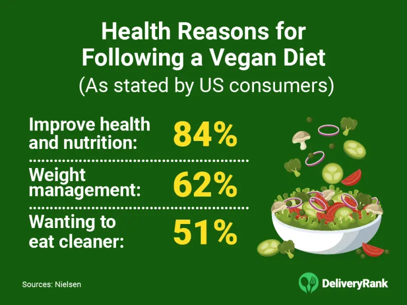 84% of consumers in the US state that their primary motivation for becoming vegan is to improve health and nutrition. Other similar reasons relating to health were top motivators, with 62% opting for veganism to control weight, while 51% claimed they wanted to eat cleaner.