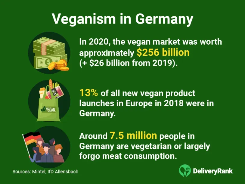 Germany’s vegan market is increasing rapidly. As of 2020, the vegan market in Germany was worth $256 billion, which is an increase of $26 billion from 2019.