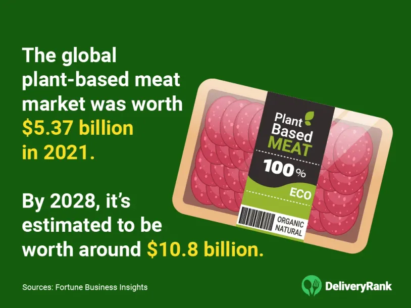In 2021, the value of plant-based meat worldwide sat at $5.37 billion, increasing from $4.98 billion in 2020. And with an impressive CAGR of over 10.4%, by 2028, the plant-based meat market is estimated to be worth $10.80 billion.