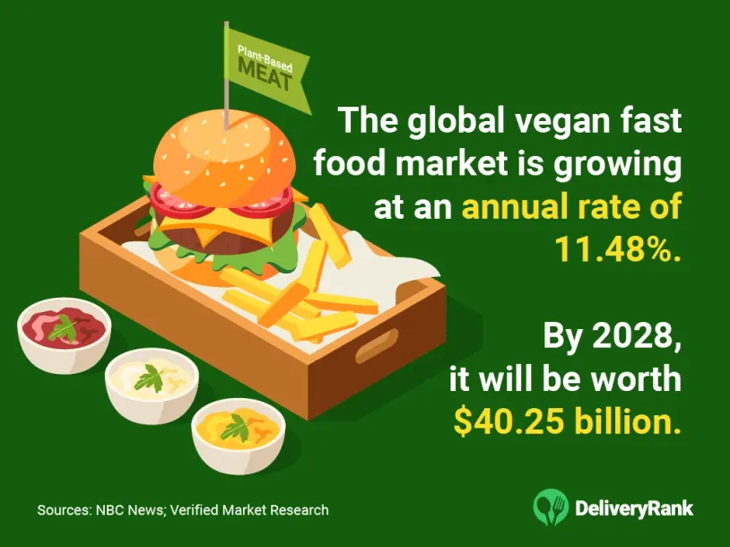 In 2020, the global vegan fast food market was valued at approximately $17 billion. This is expected to propel to $40.25 billion by 2028, with an impressive annual growth rate of 11.48% between 2021 and 2028.