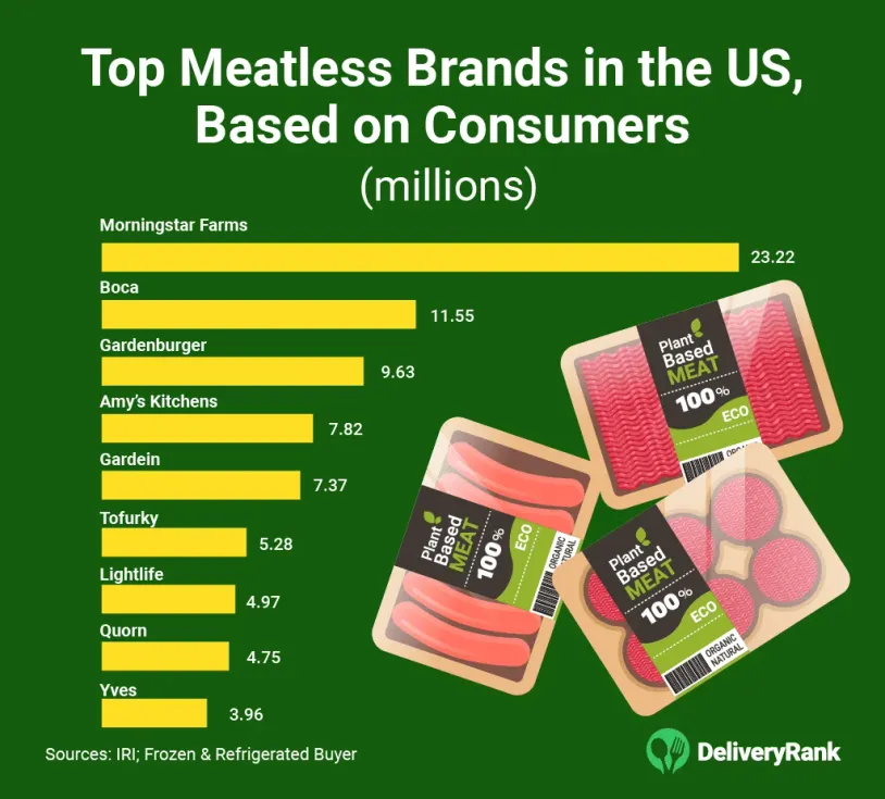 Beef-style alternative burgers are the second most popular option (bought by 68% of consumers), followed by chicken substitutes, accounting for 52% of vegan meat purchases.