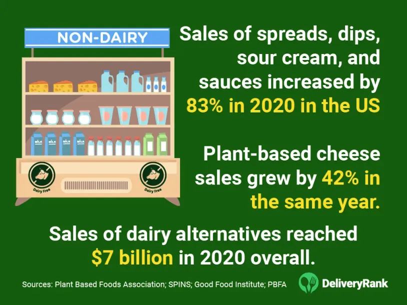In 2019, the sales value of dairy-free milk hit $2 billion in the US. By the end of 2020, non-dairy milk sales in the US grew by 25% to $2.5 billion.