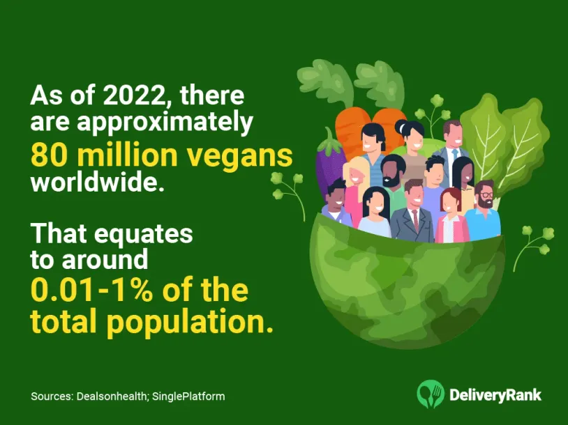 According to data from 2023, the global vegan population is approximately 80 million, just a little over 1% of the worldwide population. However, the vegan demographic is still on the rise. In the United States, the number of vegans has risen by 600% in the past 3 years alone.