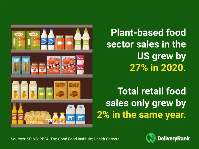 In 2020, the plant-based food sector in the US accelerated by 27%, while total retail only grew by 15% in the same period.