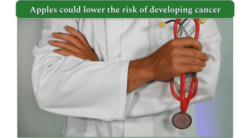 Research suggests that consuming apples might lower the risk of various types of cancer. While the findings are still early, studies in animals and lab settings have shown promising results. These studies mimic the stages of cancer development and show how apple polyphenols might help at each step⁸.