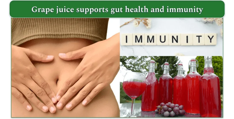 The high water content helps keep the digestive tract hydrated. With vitamins C and K, as well as minerals like potassium, grape juice supports the immune system and maintains proper digestive function¹¹.