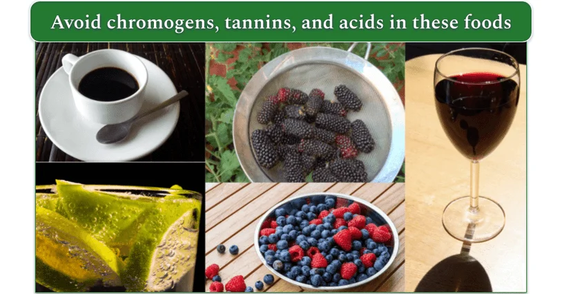 🍷 Be Conscious of Stain-Causing Foods: Be aware of and moderate your intake of foods and drinks that can stain teeth, like berries, red wine, and soda.