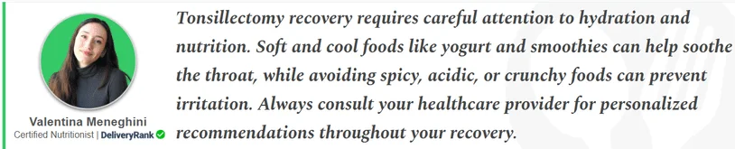 Yes, there are some foods you should avoid, as they can irritate the throat and delay healing. Hot foods and drinks should also be avoided in the initial recovery phase.