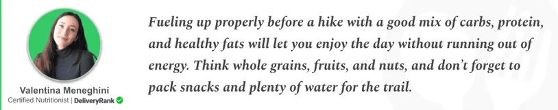 A well-balanced meal 2–3 hours before your hike helps ensure your body is fueled and ready. Focus on these key nutrients when planning your meals: