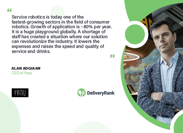 Welcome to Delivery Rank’s exclusive interview with Alan Adojaan, the CEO of Yanu, the world's first contactless robot bar. Alan is a visionary entrepreneur and the driving force behind the innovative concept of Yanu, revolutionizing the way we experience the hospitality industry. With his expertise in robotics and automation, Alan has successfully combined cutting-edge technology with the art of mixology to create an extraordinary customer experience. Today, we have the privilege to delve deeper into Alan's journey, his inspiration, and the future of Yanu. Let's hear directly from Alan himself about this exciting venture and the impact it is making on the world.