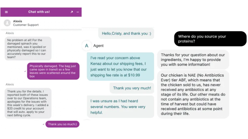 At best – For meal kits, ingredients are well-organized and often pre-prepped, with a clear, step-by-step visual recipe that sticks to the estimated cook time. Prepared meals come with an oven/microwave-friendly tray.