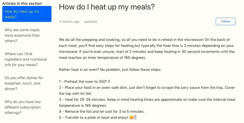 My first interaction with Freshly’s customer service was quick and painless. Since I don’t have a microwave, I was looking for oven cooking instructions. And as this question is apparently one of the most commonly asked, it took me all of 2 seconds to find the answer on the website.
