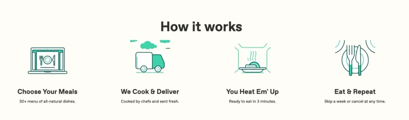 The meals arrive already prepared, all you need to do is heat them up in the microwave or oven, and your lunch/dinner/snack can be eaten right out of the container.